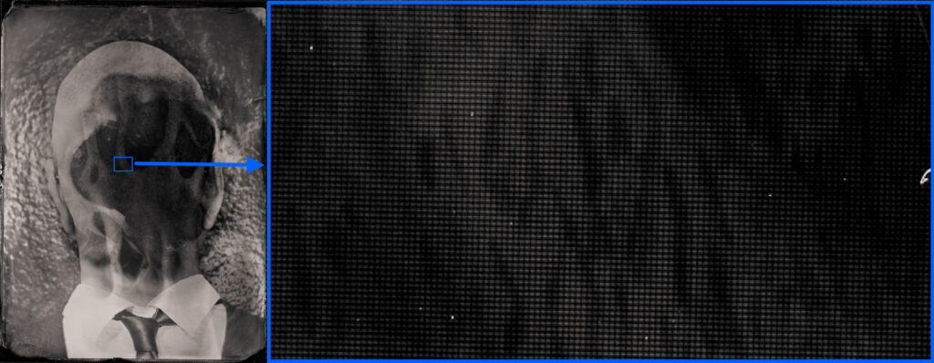With that information in mind, the wet plate collodion process was again my medium of choice and fits perfectly to Boris story. To include the digital medium, I liked the idea to capture his portrait from an iPad. And if you have looked close enough, you will see that this 100 year old camera with a 150 year old Dallmeyer Petzval lens still captured the pixel of the iPad. So this completely analog and hand made image has a digital background.