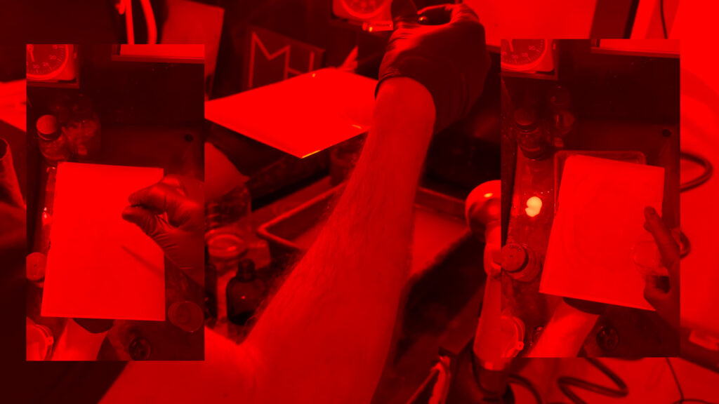 I wanted to let the process take over — so I decided to apply the chemicals before development, rather than on an already finished plate. That meant I had only a vague sense of where the portrait would eventually emerge. It’s a balance: I still had some control over placement, but the rest was handed off to the analog process itself. I even varied how I applied the developer, leaning further into that unpredictability and letting the process gain more control.